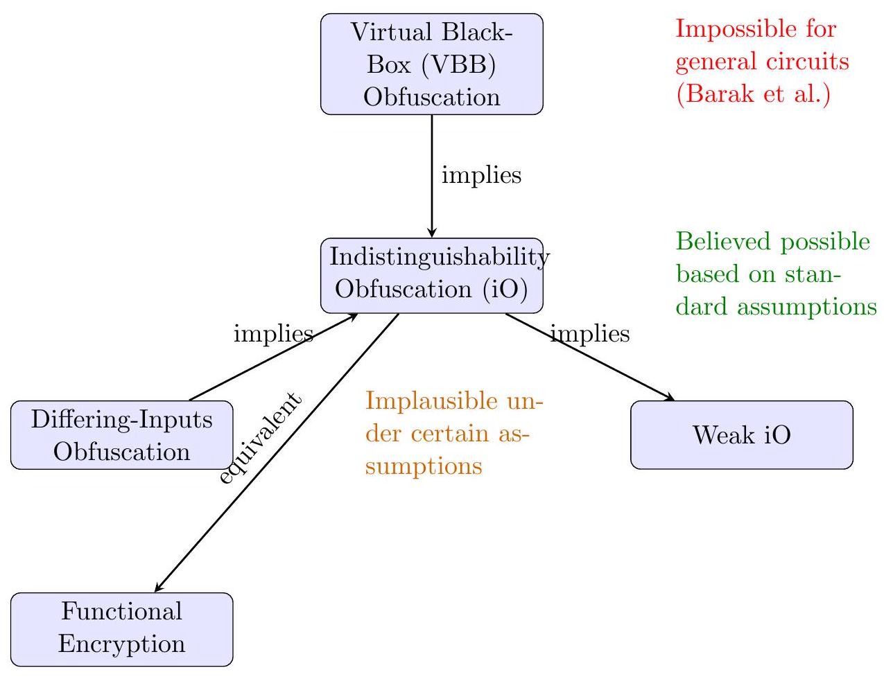 Figure 2: Hierarchy of program obfuscation notions and their feasibility.